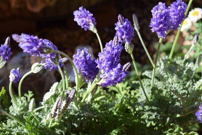 この系統では、フレンチラベンダーが有名で、園芸店にもよく売っているので、この特徴を覚えておくと購入時に有利です。夏さえ越せれば、多年草です。
